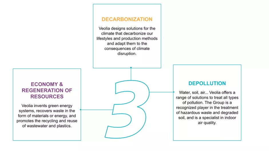 Veolia’s purpose is to contribute to human progress by firmly committing to the Sustainable Development Goals set by the UN to achieve a better and more sustainable future for all. It is with this aim in mind that Veolia sets itself the task of "Resourcing the world" through its environmental services business.