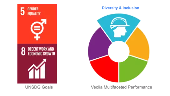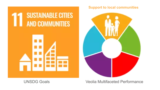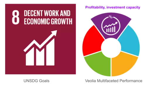 Occupational Health and Safety: Veolia maintains high standards for worker safety and well-being, aiming for zero-accident in every site, providing regular safety training, work briefing and Health and Safety week every year, contributing to the "decent work" aspect of SDG 8.