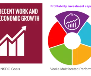 To be useful to all its stakeholders, Veolia has incorporated environmental, social and governance(ESG) objectives and indicators at the heart of the company’s operation. This is what Veolia refers to as “multifaceted performance. The multifaceted performance wheel represents our balanced commitments and impact between: