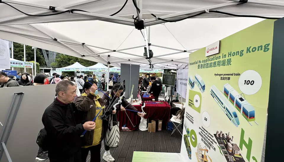 攤位獲公眾熱烈支持,笑聲載道,訪客們積極參加我們的互動遊戲,反映了市民對對綠色氫能技術潛力的興趣及關心。