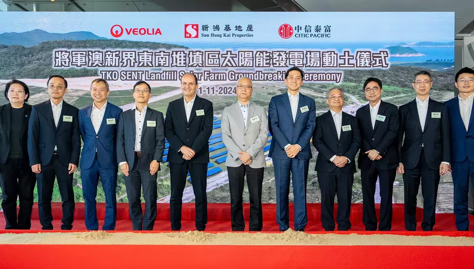 威立雅、新鴻基地產(新地)及中信泰富今日為本港首個由私人發展、建在堆填區地面的太陽能發電場舉行動土儀式,以行動支持特區政府《氣候行動藍圖2050》。此項目預計於2025年上半年開始供電。